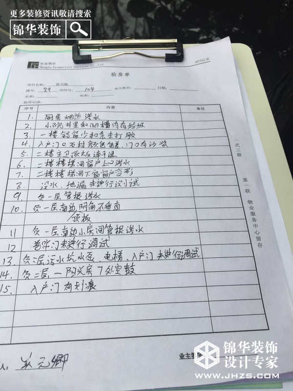 本次驗(yàn)房,我們的工作人員針對房屋的水電,墻面,頂面,地面進(jìn)行了詳細(xì)的檢查,并給出書面報(bào)告,為業(yè)主提供專業(yè)的房屋問題解決方案和建議。希望讓廣大富力業(yè)主在裝修前把房屋問題全面解決