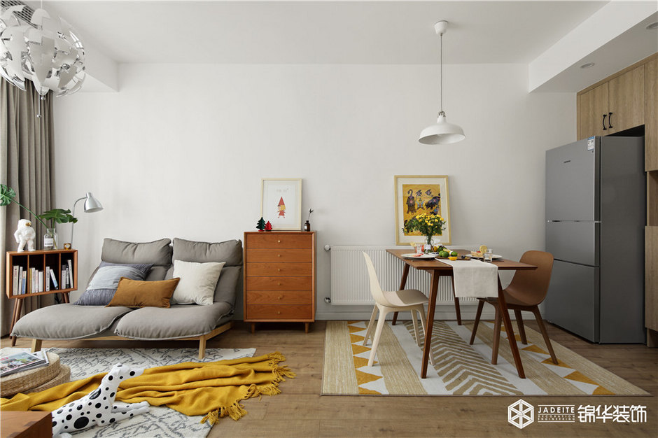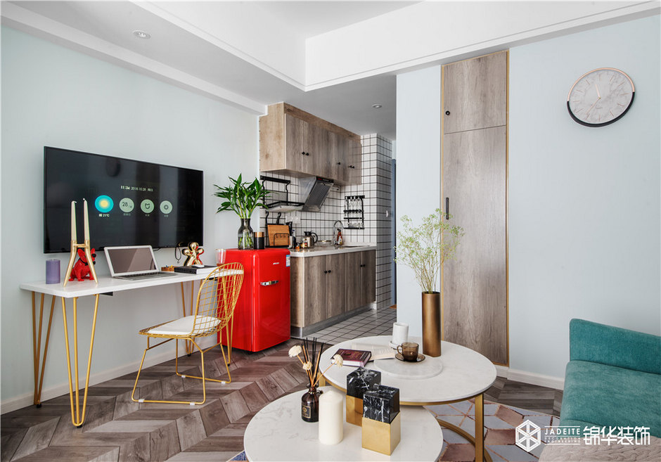 ▲因面積有限,所以客廳統(tǒng)一采用小體積家具,避免視線上的壓抑。不同顏色、材質(zhì)、造型的和諧碰撞,使得空間更立體,更有層次關(guān)系。