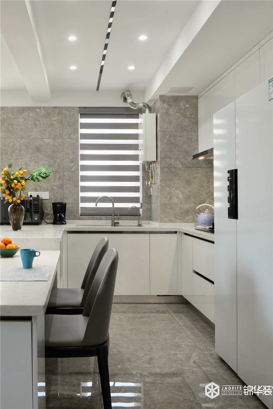 ▲廚房以白色調(diào)為主,并選用了經(jīng)典的小白磚,所以即使面積有限,卻格外清爽整潔!