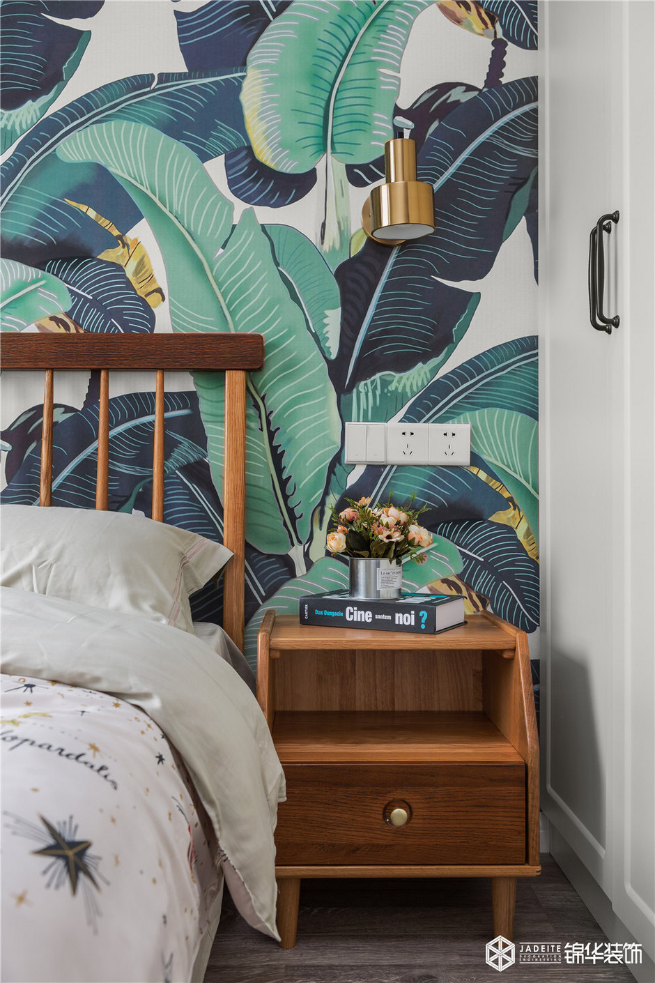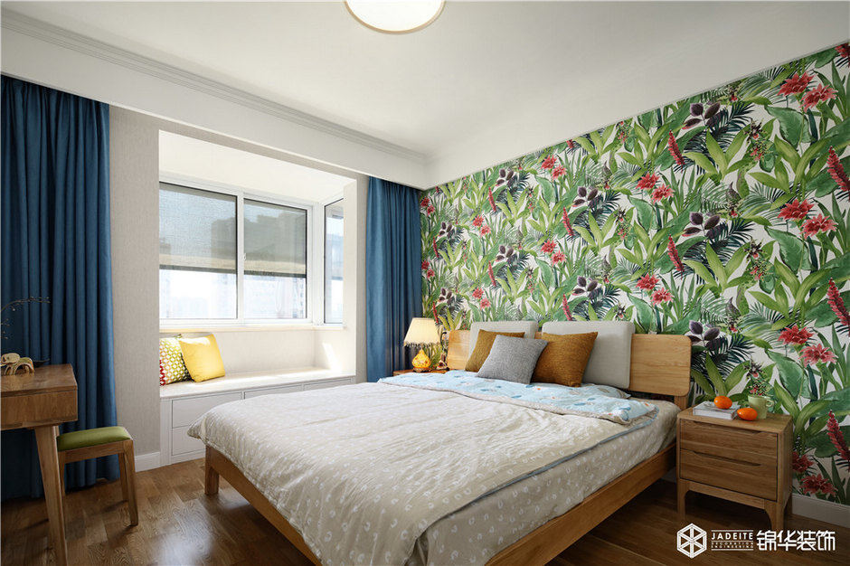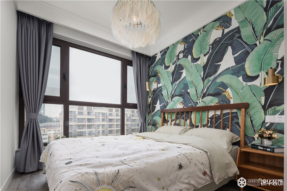 ▲綠色調(diào)的背景墻讓素雅的空間充滿活力,夢(mèng)中好似也彌漫著自然味道!