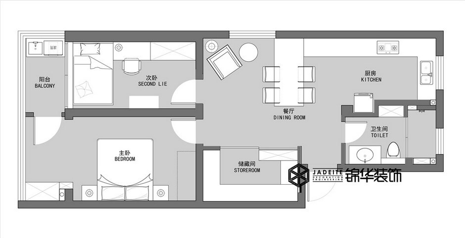 案例戶型:兩室一廳一衛(wèi)