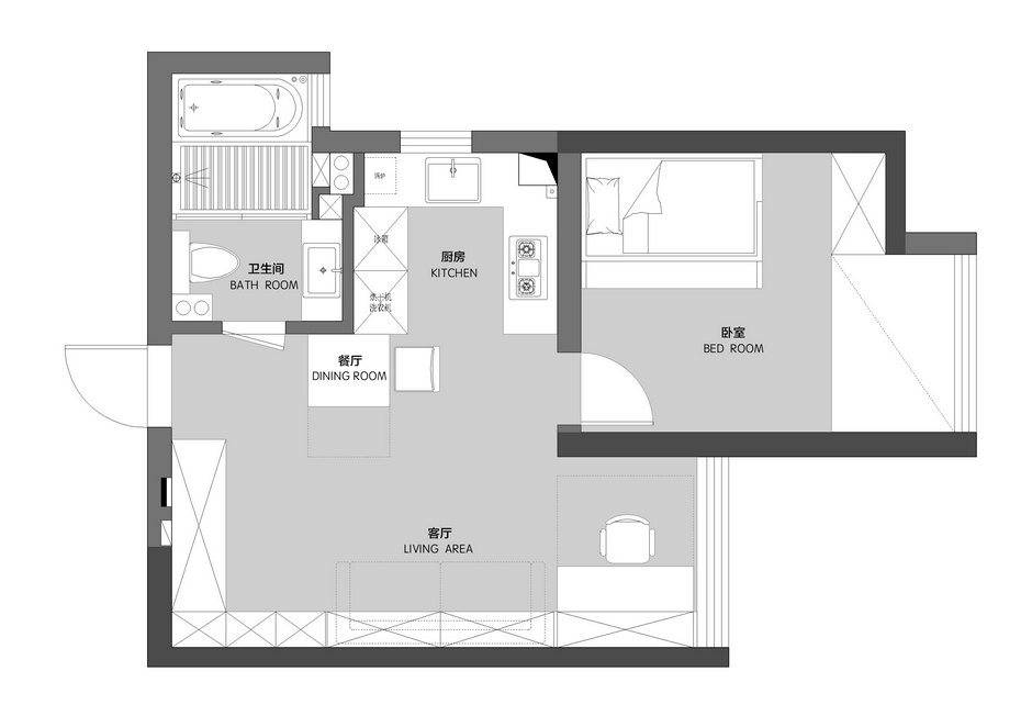 案例戶型:一室一廳一衛(wèi)