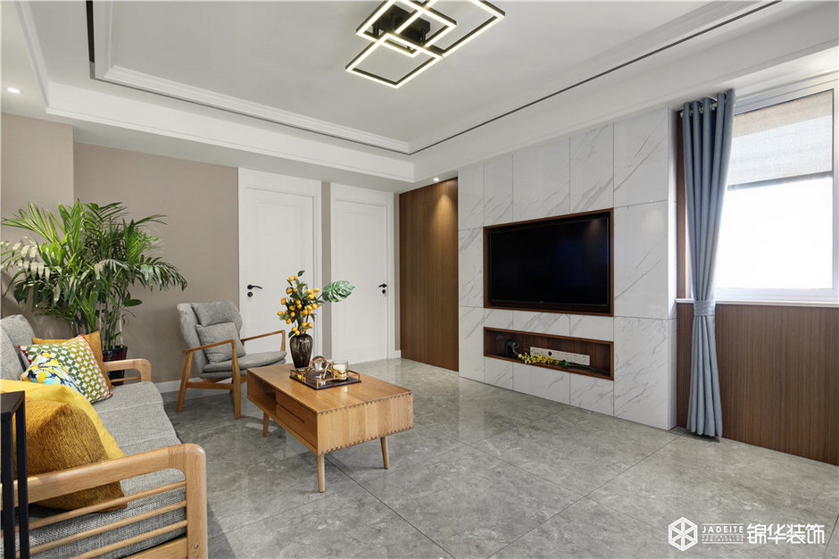 ▲客廳大面積使用木飾面板作為背景,干凈簡(jiǎn)潔又不失質(zhì)感!