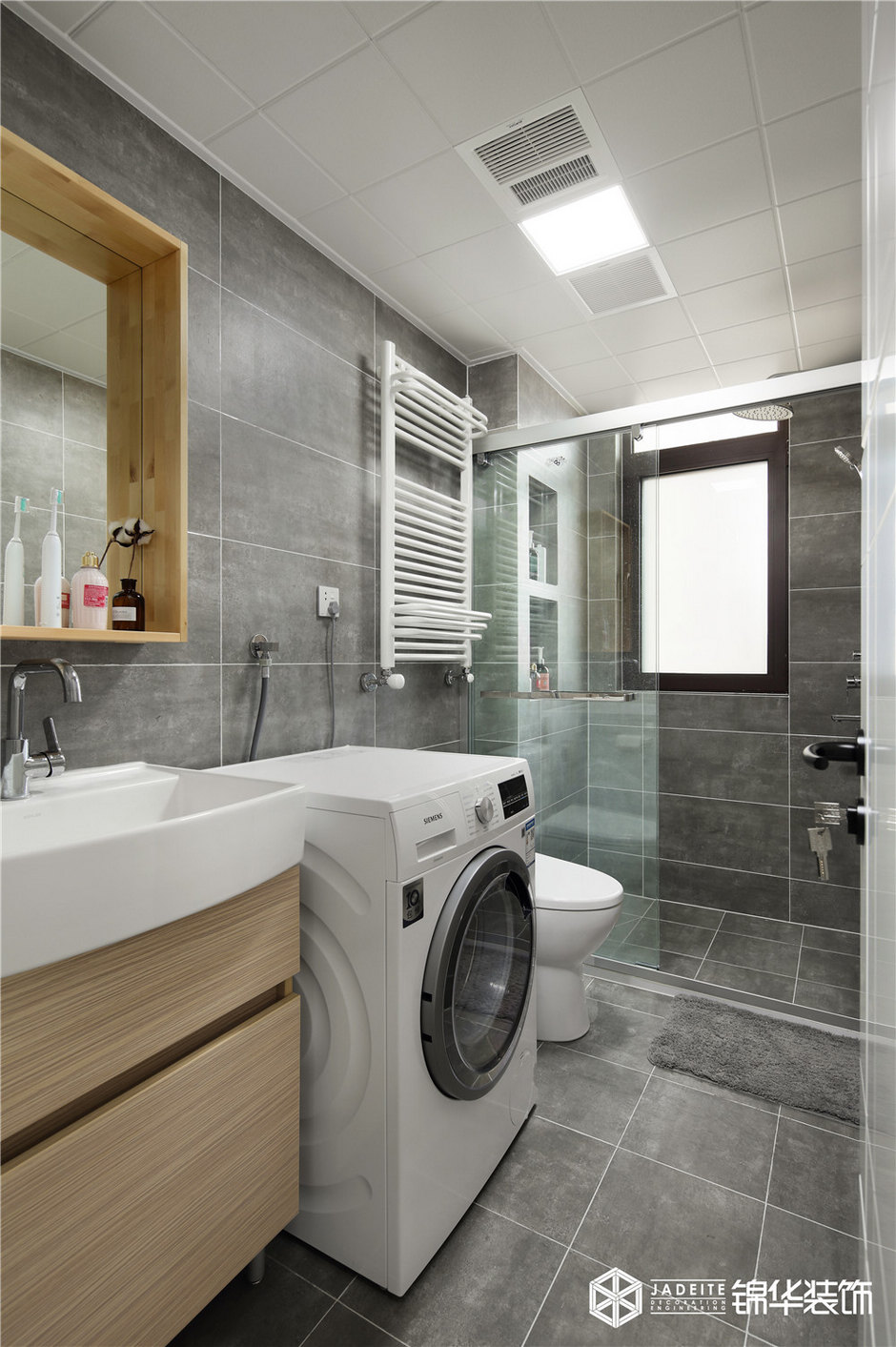 ▲衛(wèi)生間雖然不大,但設(shè)計(jì)師還是做了簡(jiǎn)單的干濕分離,同時(shí)還能放下洗衣機(jī)!