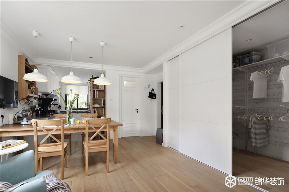 考慮到戶型南北通透,采光較好,在空間中沒有做特別大的改造變動(dòng),而是在儲(chǔ)藏等功能上做了不少改動(dòng)。