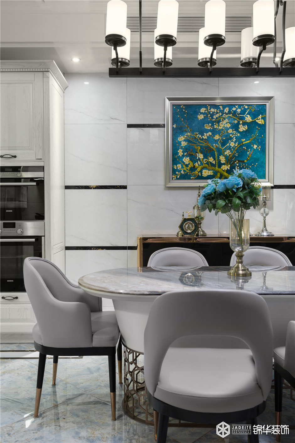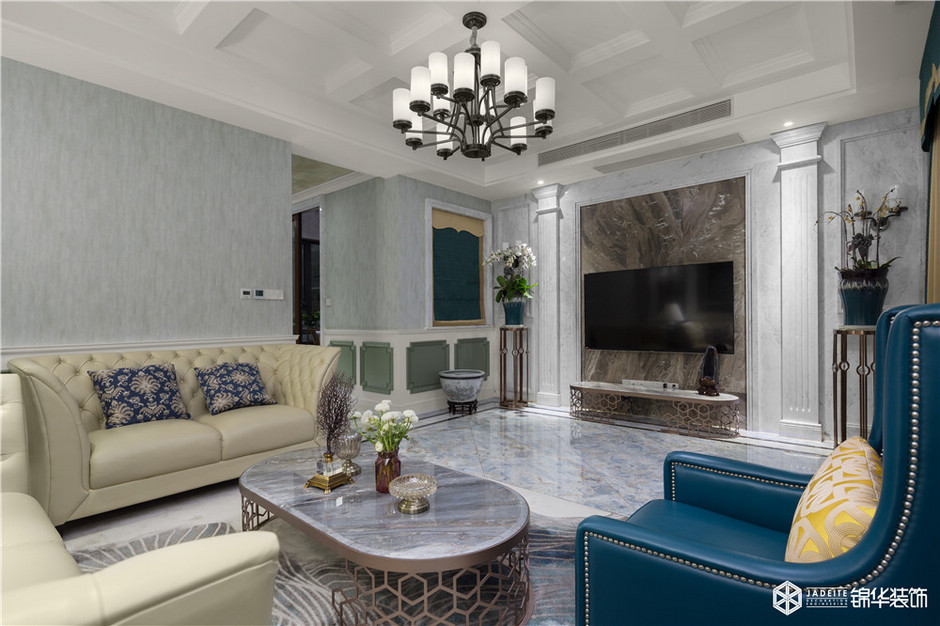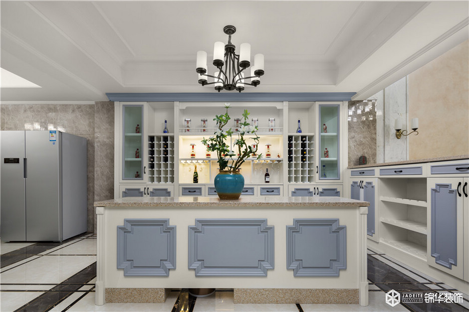 設(shè)計(jì)師:是的,業(yè)主那會看了挺多的效果圖以及實(shí)景照片,但沒有一個(gè)清晰的概念,說特別喜歡哪一個(gè)。巧的是,那會廣州正好有一個(gè)設(shè)計(jì)展和家具展,我們就去了。展會上,客戶特別喜歡一款沙發(fā)的樣式,所以我們就根據(jù)這個(gè)思路,找到了本案的設(shè)計(jì)風(fēng)格——美式鄉(xiāng)村。